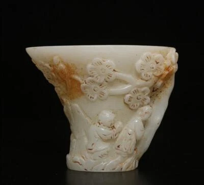 Old Chinese White Jade Cup w/ kids