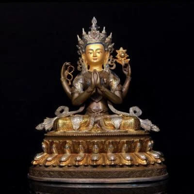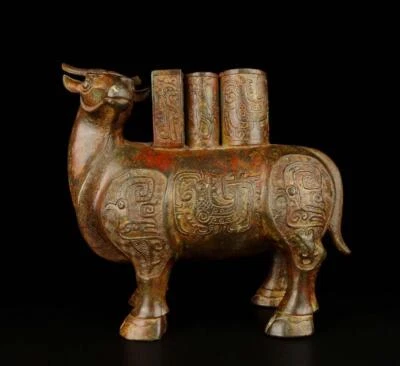 32CM Old Chinese Bronze Statue w/cow N1746