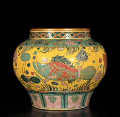 29CM Old Chinese Wucai Pot Jar W/fish N3479